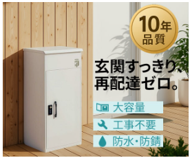 玄関先に直接置かれる置き配と比べ、ボックス内に保管できるため盗難や破損のリスクを抑えられます。大切な荷物を安全に受け取りたい方にとって心強い存在です。
